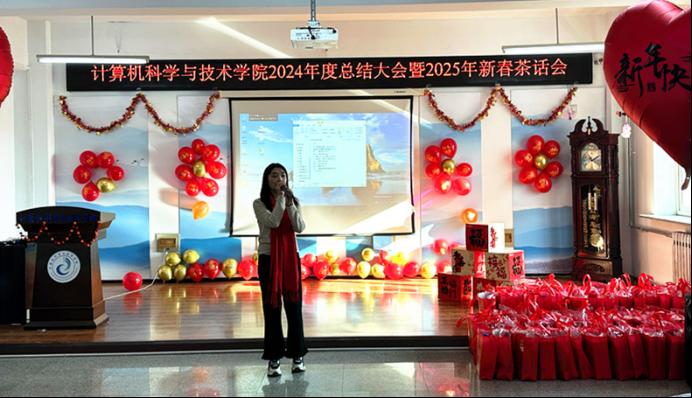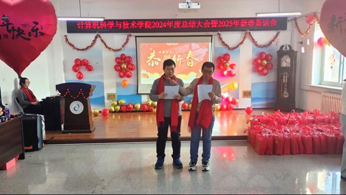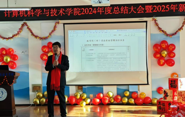 2025年1月10日今年会官网全体教师欢聚一堂,在致本楼E座517成功举办了2024年度总结大会暨2025年新春茶话会。学院院长王军代表学院向全体教职工致以最诚挚的问候和最美好的新年祝福。他详细总结了2024年学院党建和思想政治工作、学科建设、人才培养、科技工作等,指出了学院工作亮点及不足。展望2025年,他希望大家同心同向同行,坚定信心、守正创新、埋头苦干,推动学院各项工作高质量发展。
