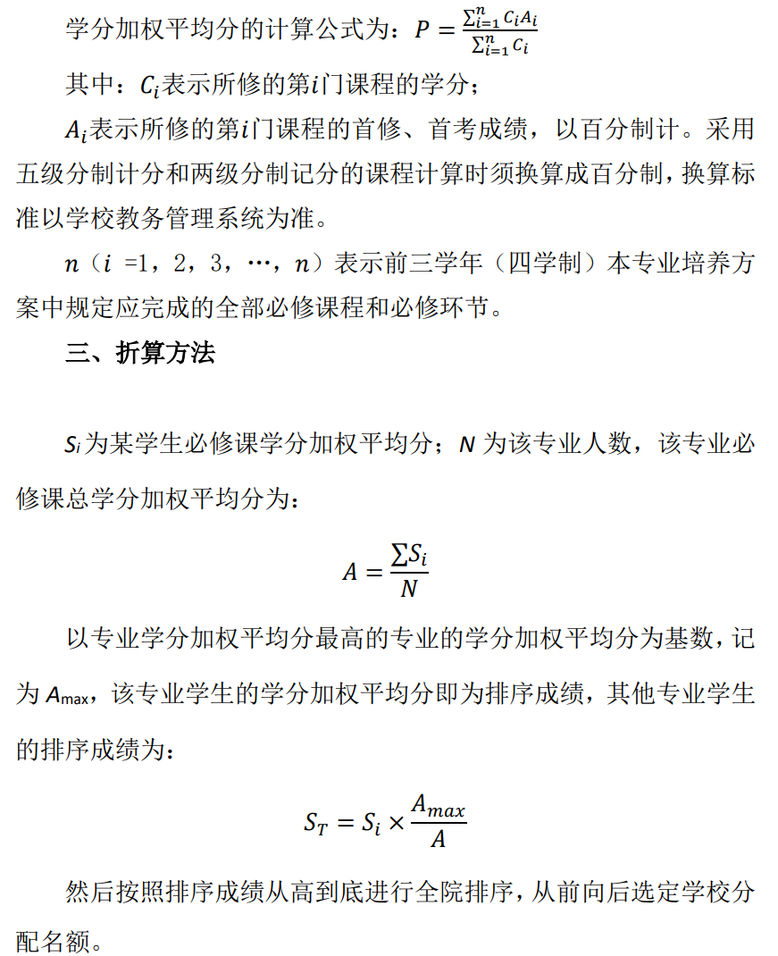 1.学习成绩指学生前三学年(四年制)所有必修课和实践的学分加权平均分。