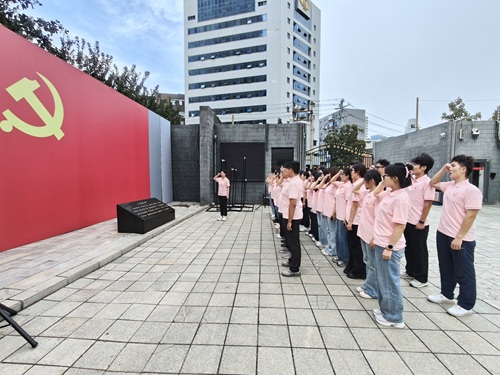 参观结束后,在学院党委书记王菲同志带领下,师生党员整齐列队,面对党旗庄严地重温入党誓词。